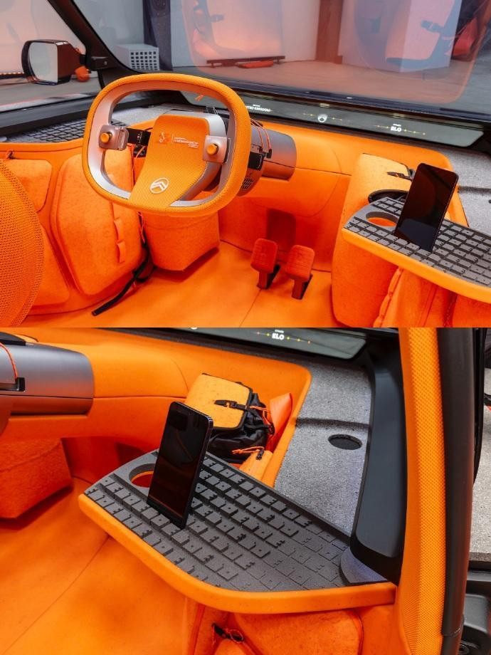 在材料与可持续性方面,ELO采用了多项轻量、可回收设计。座椅后背采用耐磨、可清洁材质,车内储物盒则使用回收自OLI概念车的纤维压製而成。