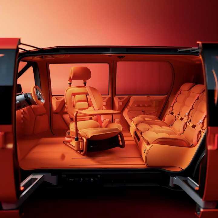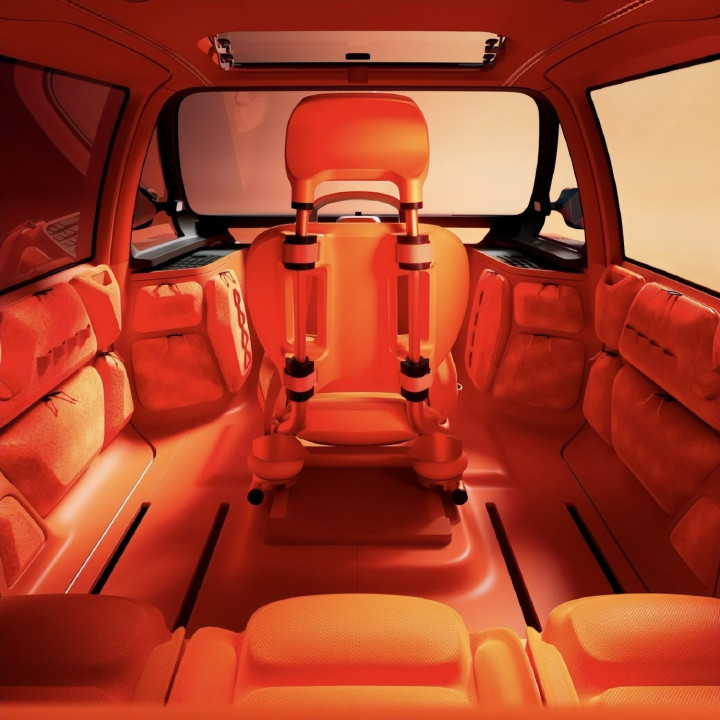 车辆支持1+3的四座布局或3+3的六座布局。在六座模式下,驾驶员座椅两侧分别有可拆卸座椅,不过位置相比驾驶员座椅要稍微靠后。